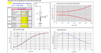 チップサーミスタの負特性の出力特性シミュレータです。ご自身でパラメータを入力してシミュレーション可能です。
