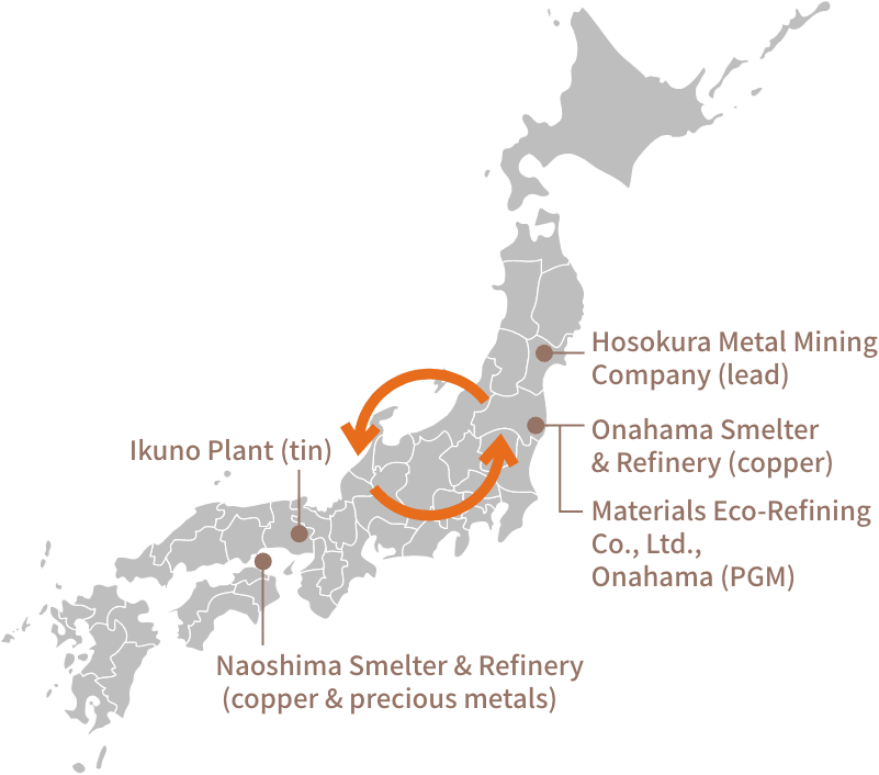 We have developed the home appliance recycling business based on our mine and mineral processing techniques, which have been cultivated over many years. We utilize our advanced skills for decomposing and separating used products.