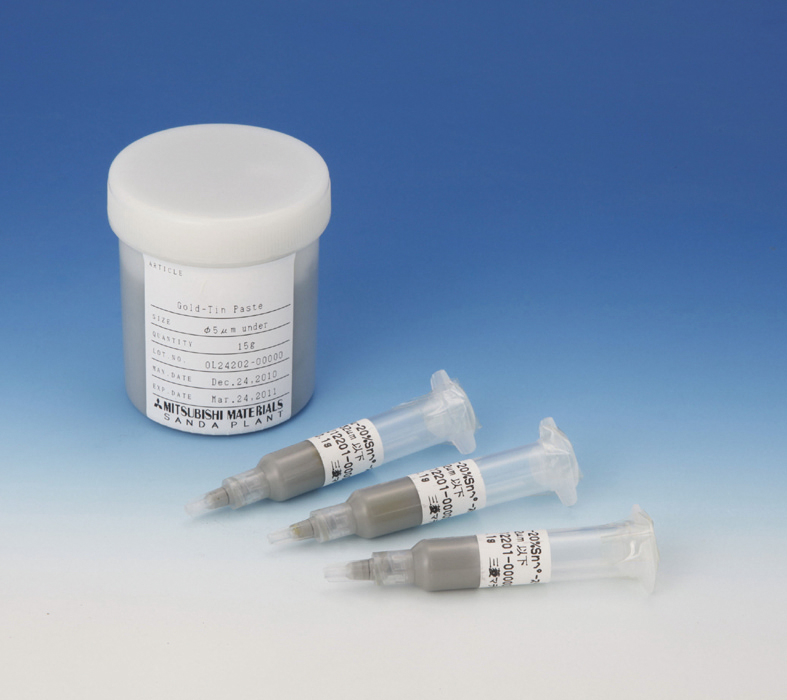 金錫合金の粉末とフラックスと呼ばれる結合材(バインダー)を混合した練り物である金錫合金ペーストは、従来品を含めて次の特長を有しています。