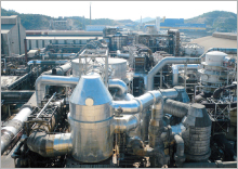 熔錬工程で発生するSO2ガスからダストを除去し、ガスに含まれる硫黄分を硫酸(濃硫酸、発煙硫酸)及び石膏(中和石膏、排脱石膏)として回収しています。