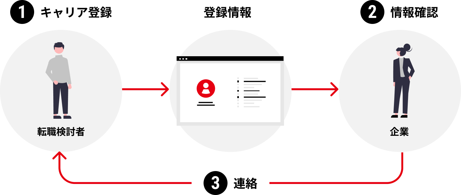 キャリア登録とは、あなたのキャリアをご登録いただくことで、あなたに適した職種・ポジションがある場合に、選考に関する打診を受ける機会が得られる仕組みです。